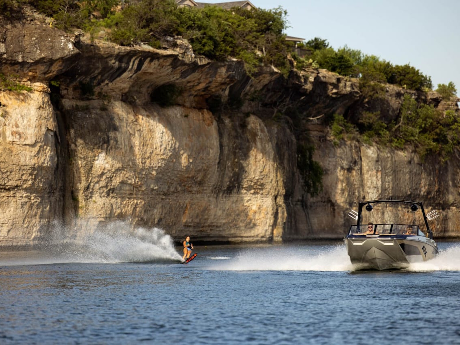 The 20 Type-S comes loaded with 2,750 lbs of ballast, our proven Convex V Hull, and the GO System with TAPS 3T technology. Pick your mode and watch this boat deliver consistent waves and wakes that rival much bigger boats. Wakesurfing, wakeboarding, waterskiing – it handles everything your crew wants to do.