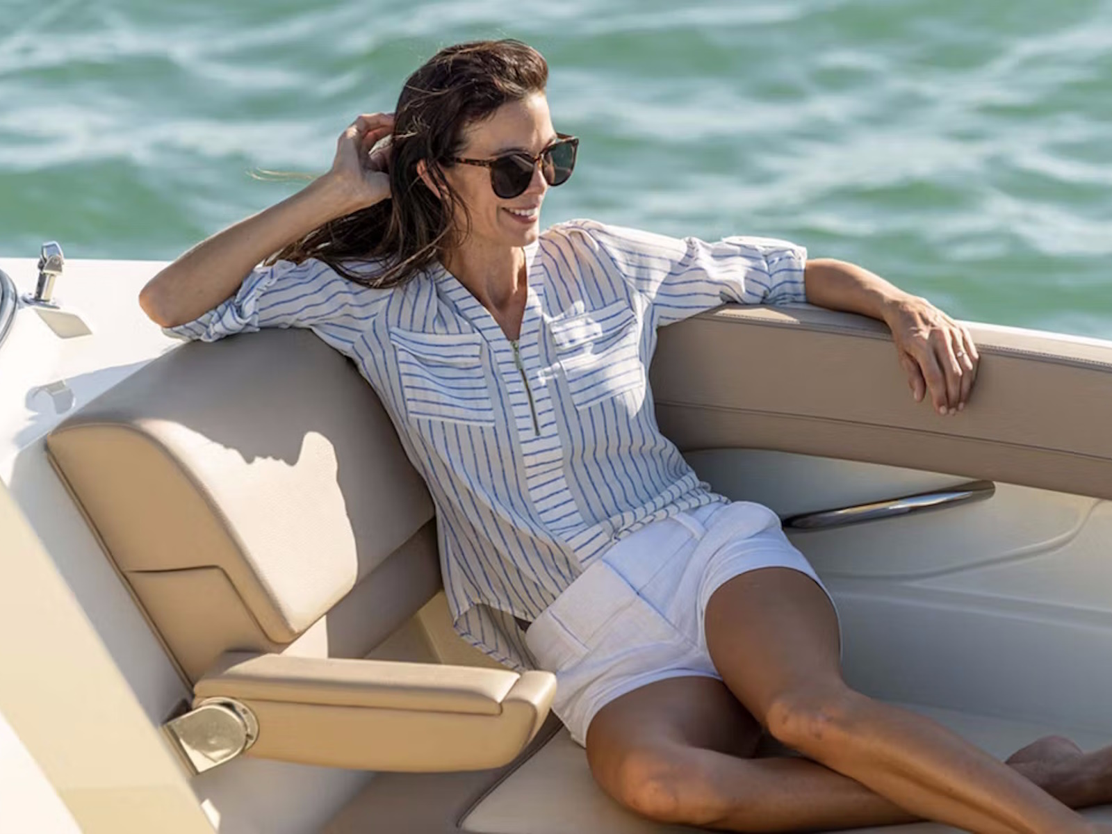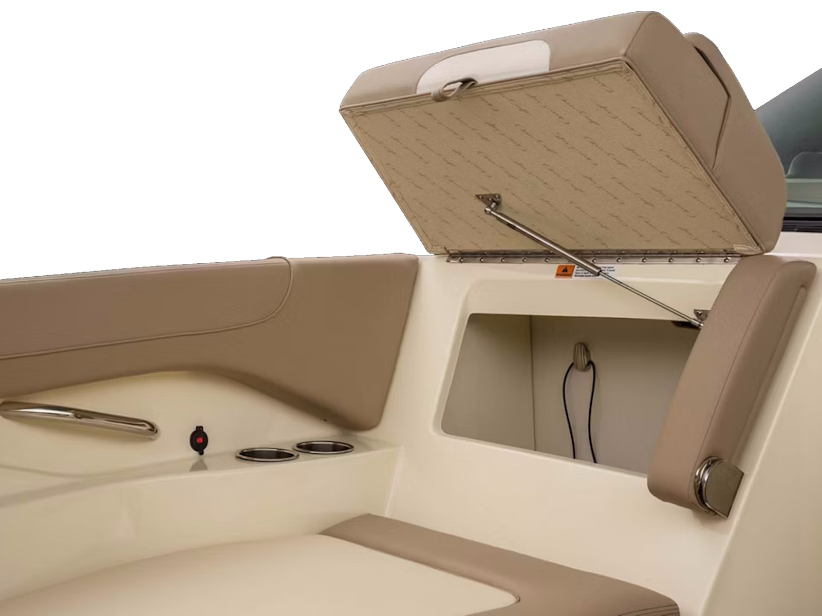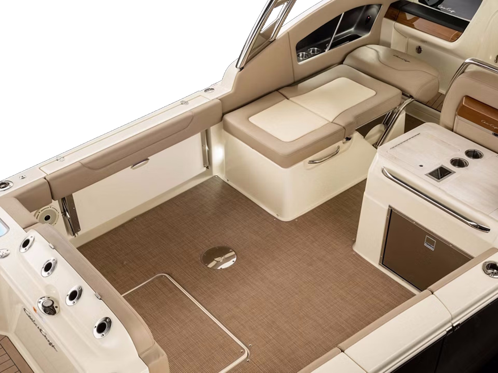The u-shaped bow seating includes forward-facing sunloungers with USB charging ports and plenty of cupholders nearby. Chris-Craft upholstery combines the finest marine-grade vinyl with high-density foam featuring antimicrobial and quick-drying properties for easy living.