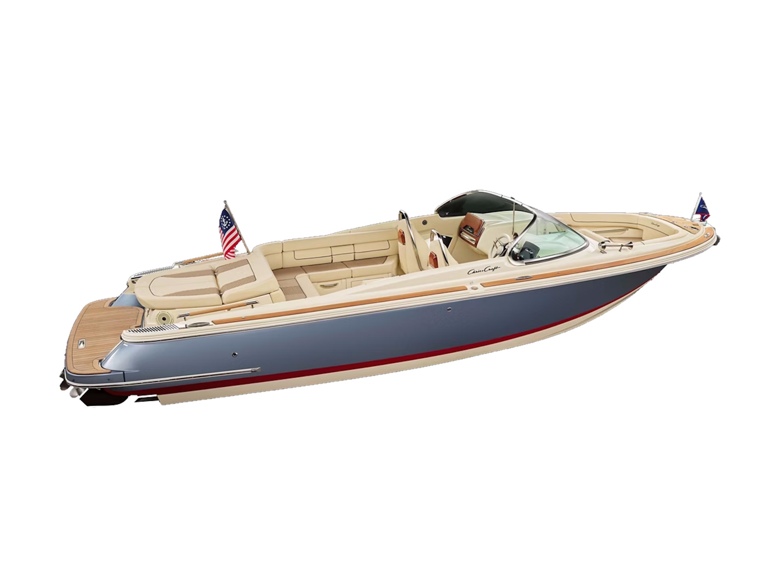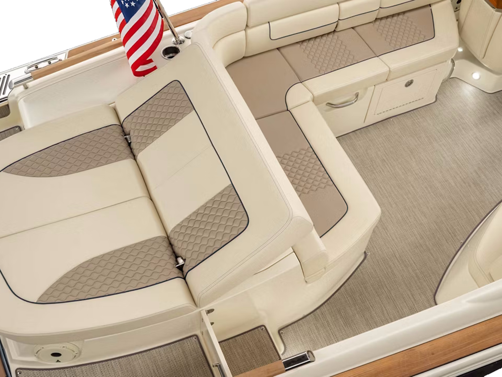 Lay the spacious sunpad flat or convert it to an aft-facing lounger. Filled with thick, high-density foam featuring antimicrobial and quick-drying properties, Chris-Craft upholstery offers the beauty of leather with the durability of the industry’s finest marine vinyl.