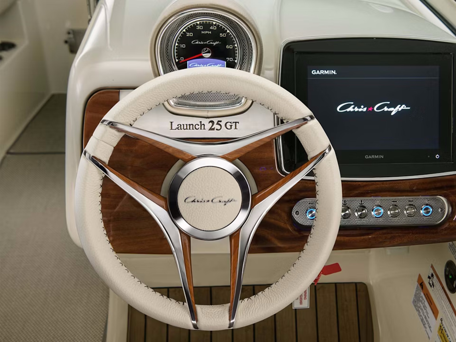Take charge at the helm with a beautifully crafted steering wheel, power steering assist, and a flush-mounted Garmin® multifunction display. The Bluetooth® enabled stereo can be enhanced with optional premium JL Audio speakers.
