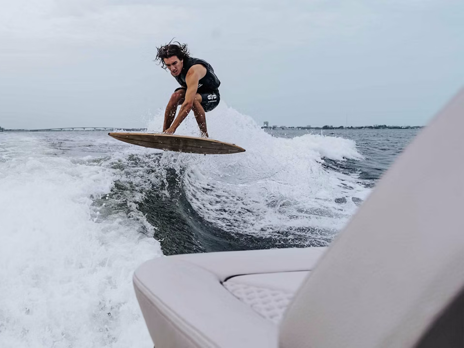Watersports enthusiasts can opt for the Wake Surf Edition , which is powered by a Volvo Penta Forward Drive V8 5.3L engine with 350 hp. Combined with a ballast system and surf tabs, you’ll be able to create the perfect wave for wake surfing behind the boat.