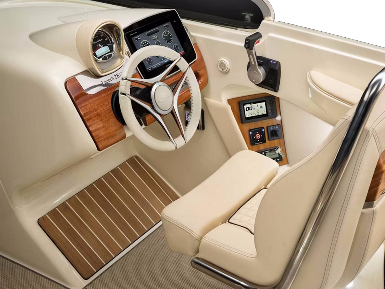 With the Heritage Edition, you’ll enjoy a full teak floor, teak covering boards, and teak accents throughout, enhancing your experience and the boat’s iconic beauty. A plush captain’s chair puts you comfortably in charge at the rich wood and stainless steel accented steering wheel.